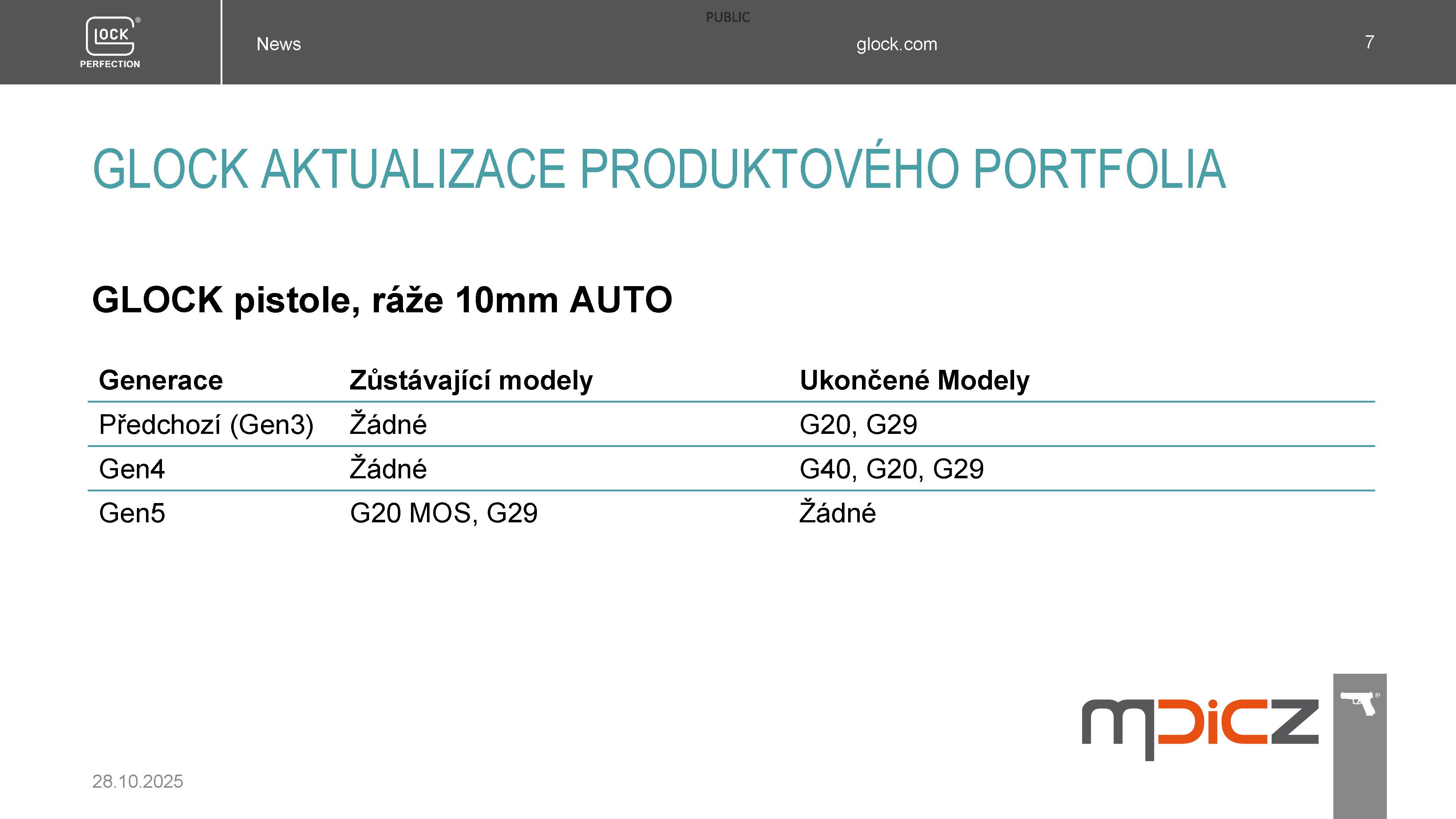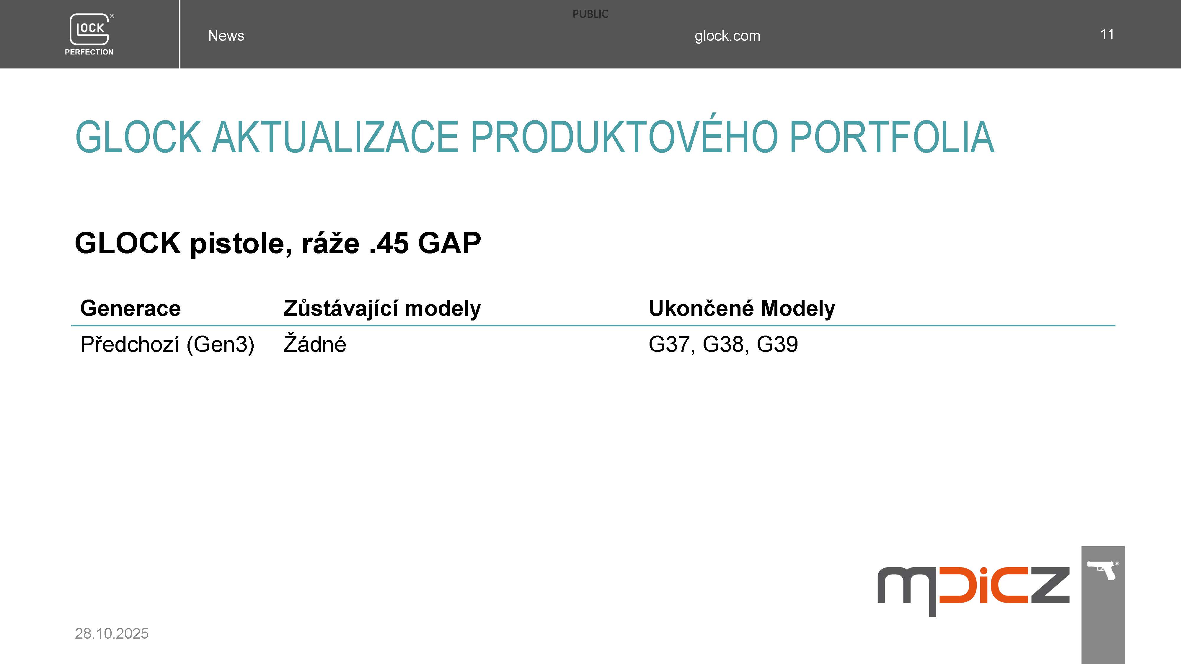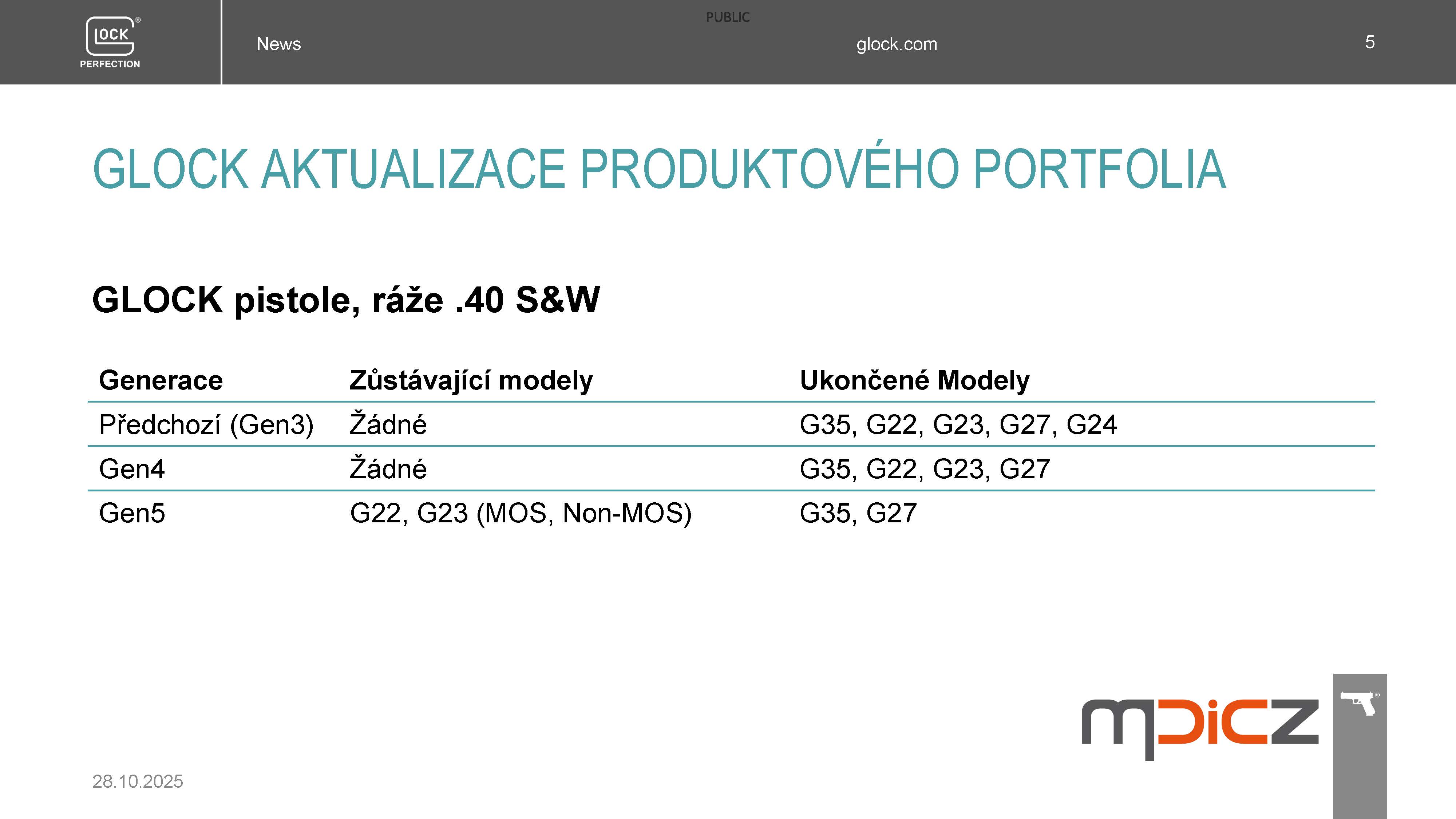 Koncem roku 2025 dojde k následujícímu snížení nabídky modelů pistolí GLOCK pro MALOOBCHODNÍ PRODEJ, kterým si výrobce VYTVÁŘÍ PROSTOR K INOVACÍM, o kterých budete informováni 8.12.2025.