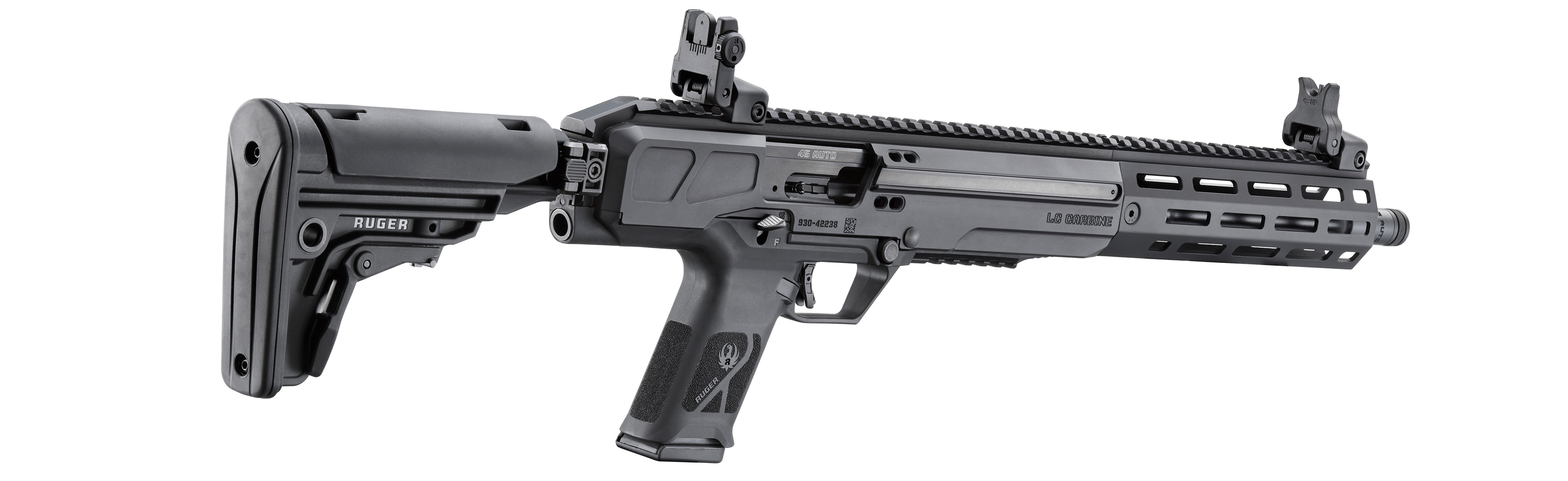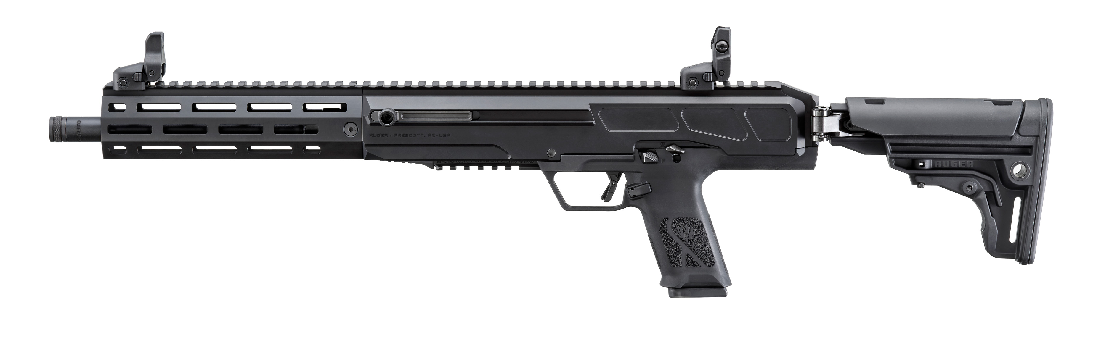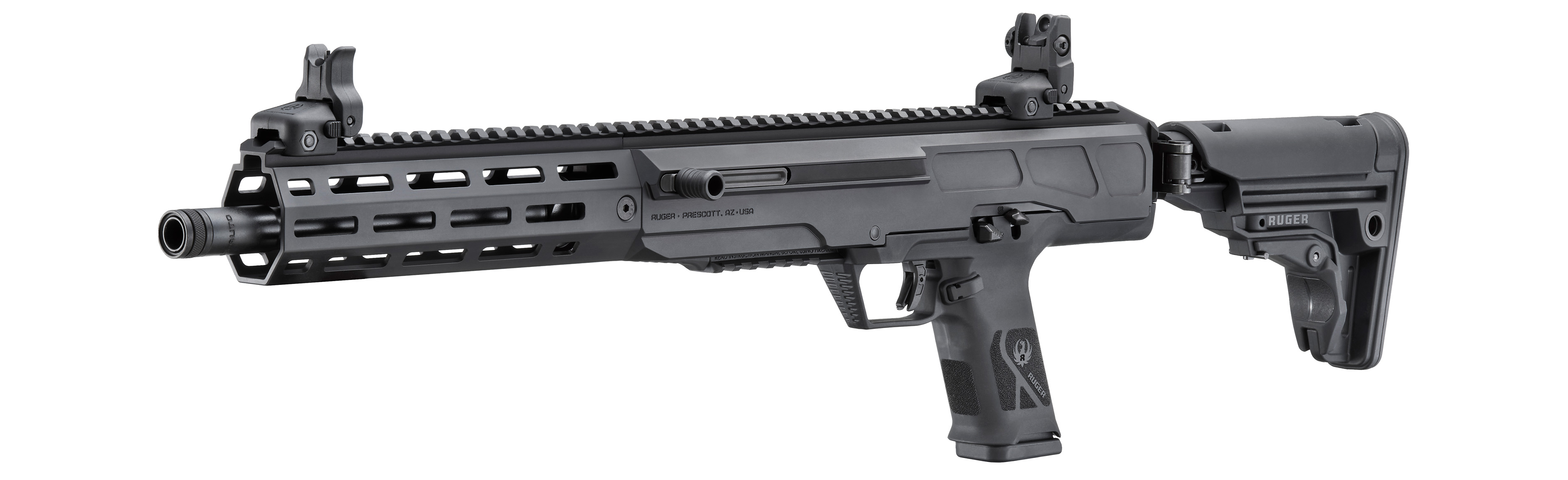 - Mířidla a montážní lišta: Sklopná mířidla Ruger Rapid Deploy, nastavitelná na výšku i stranově. Celoplošná Picatinny lišta umožňuje montáž optiky.