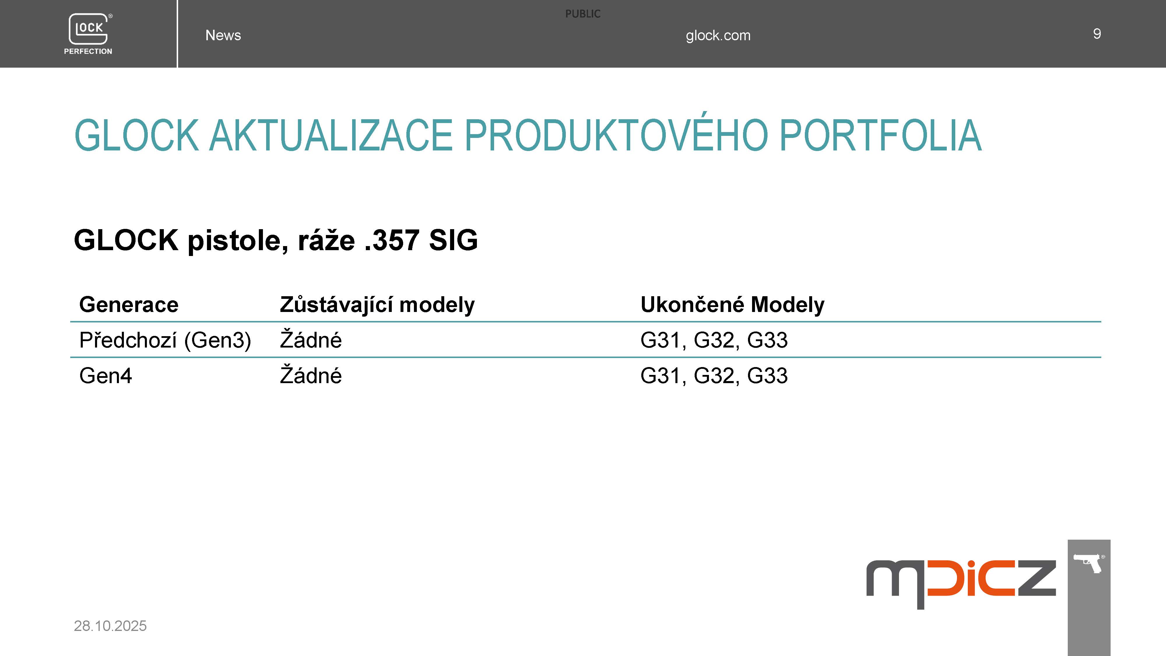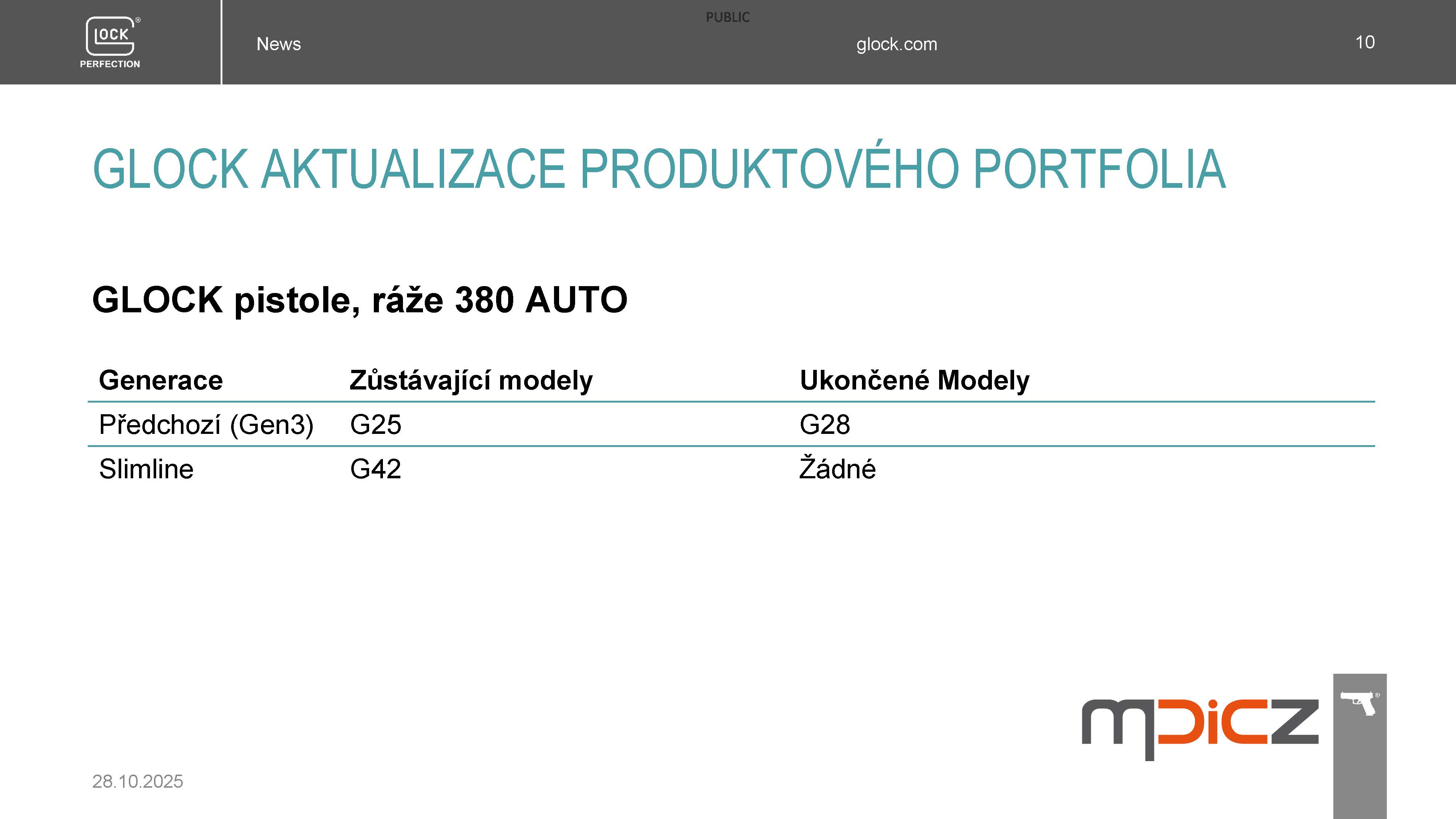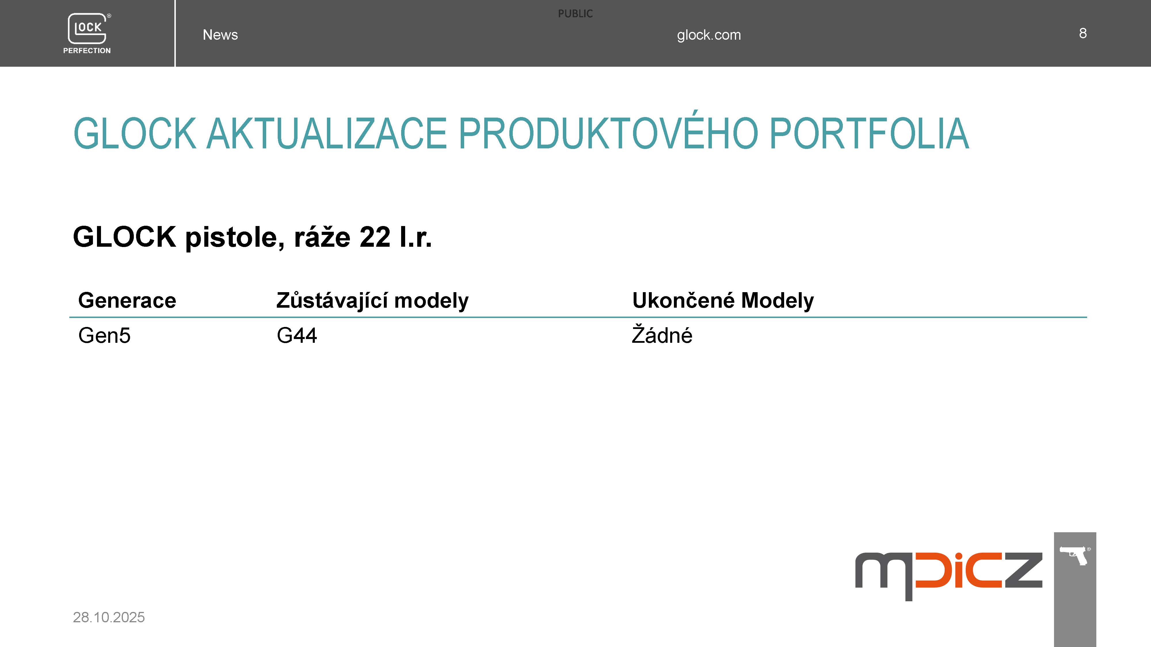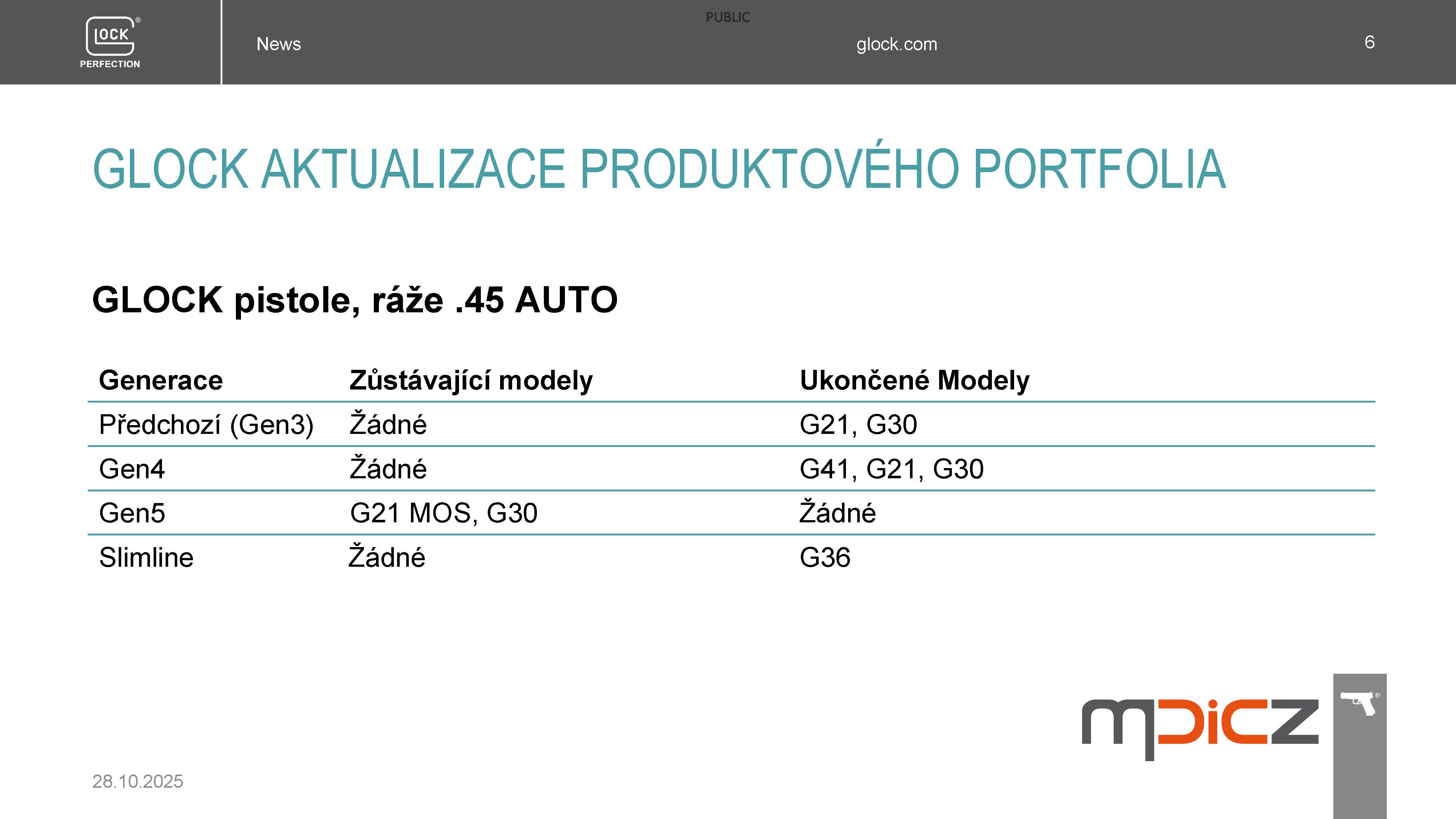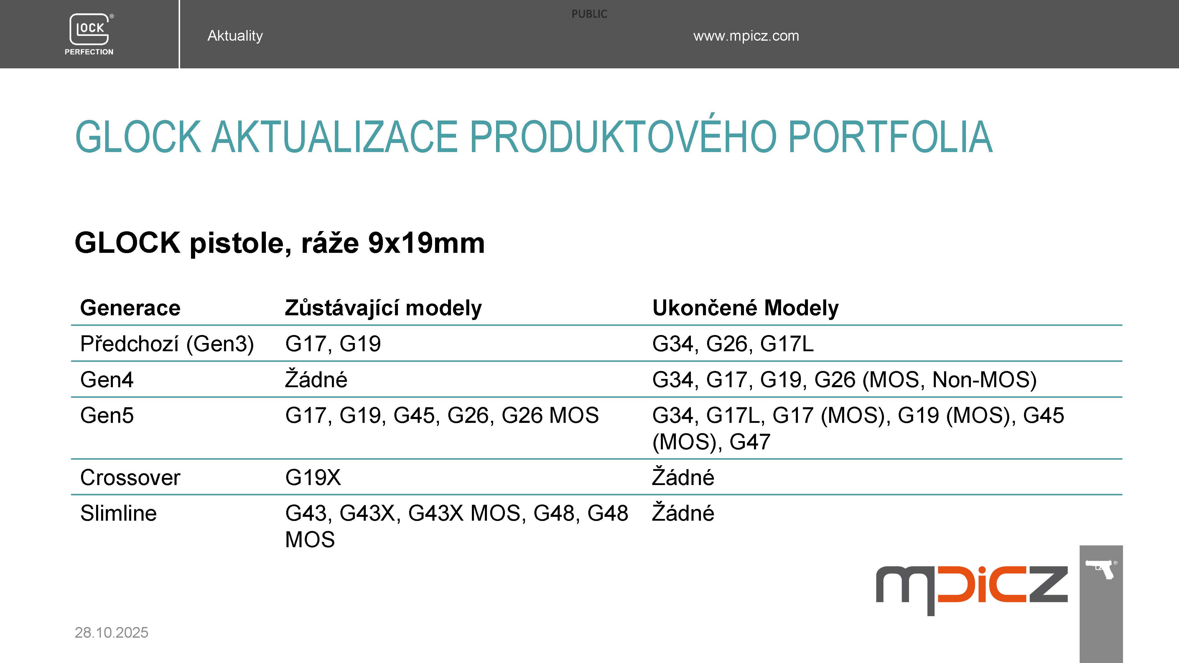 Koncem roku 2025 dojde k následujícímu snížení nabídky modelů pistolí GLOCK pro MALOOBCHODNÍ PRODEJ, kterým si výrobce VYTVÁŘÍ PROSTOR K INOVACÍM, o kterých budete informováni 8.12.2025.