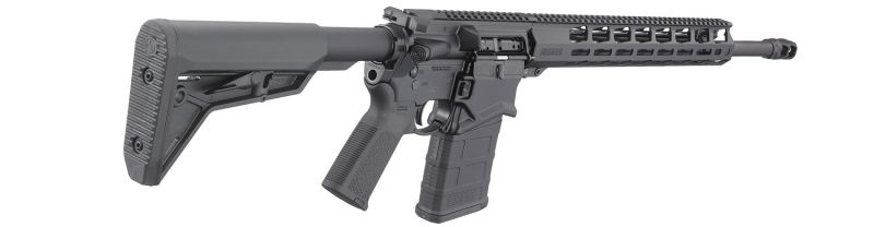 - Pažba Magpul MOE SL® a rukojeť MOE® poskytují pozitivní kontrolu a ergonomii. Koncová deska přijímače obsahuje přídavnou zásuvku pro otočnou kapsu QD sling a vyplňuje odsazený prostor na zadní straně přijímače.