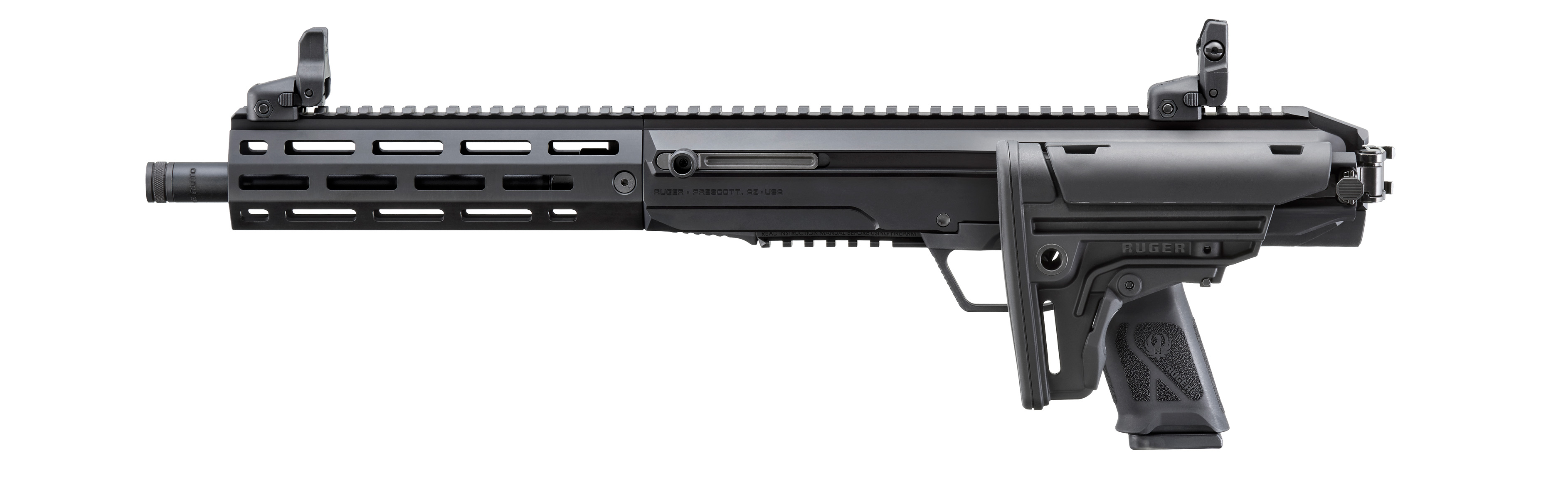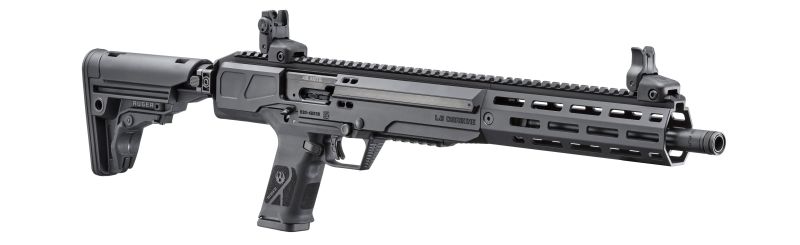 - Mířidla a montážní lišta: Sklopná mířidla Ruger Rapid Deploy, nastavitelná na výšku i stranově. Celoplošná Picatinny lišta umožňuje montáž optiky.